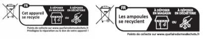 Les déchets issus de ces Produits EEE (Équipements Électriques et Électroniques) ne doivent pas être jetés à la poubelle ou dans la nature du fait de leur nocivité pour l’environnement et pour l’homme. Ces déchets doivent donc faire l’objet d’une collecté séparée des autres déchets banals et d’un traitement spécifique visant à valoriser les matériaux contenus dans des filières appropriées.